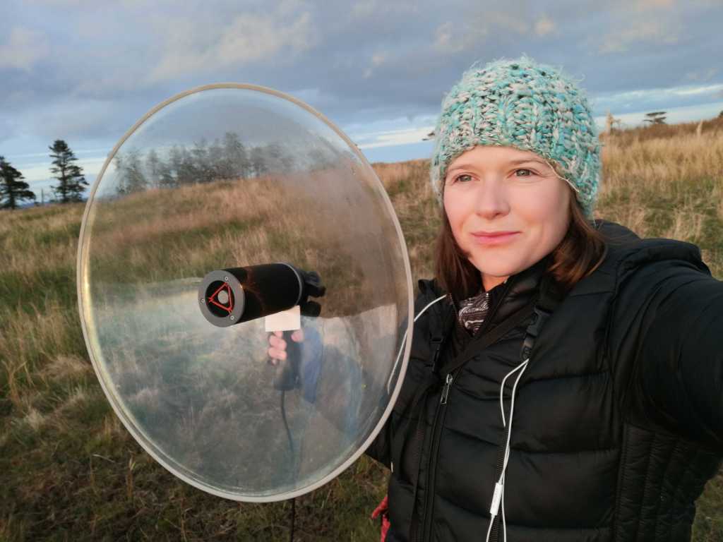 I tested sound transmission into the nest by recording naturally singing Savannah Sparrows using two microphones: one placed about 1m above the nest, at a typical singing height, and the second placed directly inside the nest, facing the same direction. Each song was recorded simultaneously by each microphone, so I was able to directly compare songs above and within the nest and determine at which distance songs become undetectable from the nest. We found that songs are much quieter when heard from inside the nest than above and conclude that the nestling acoustic environment reaches a maximum of approximately 78 m. Read more in our 2023 Avian Research publication.